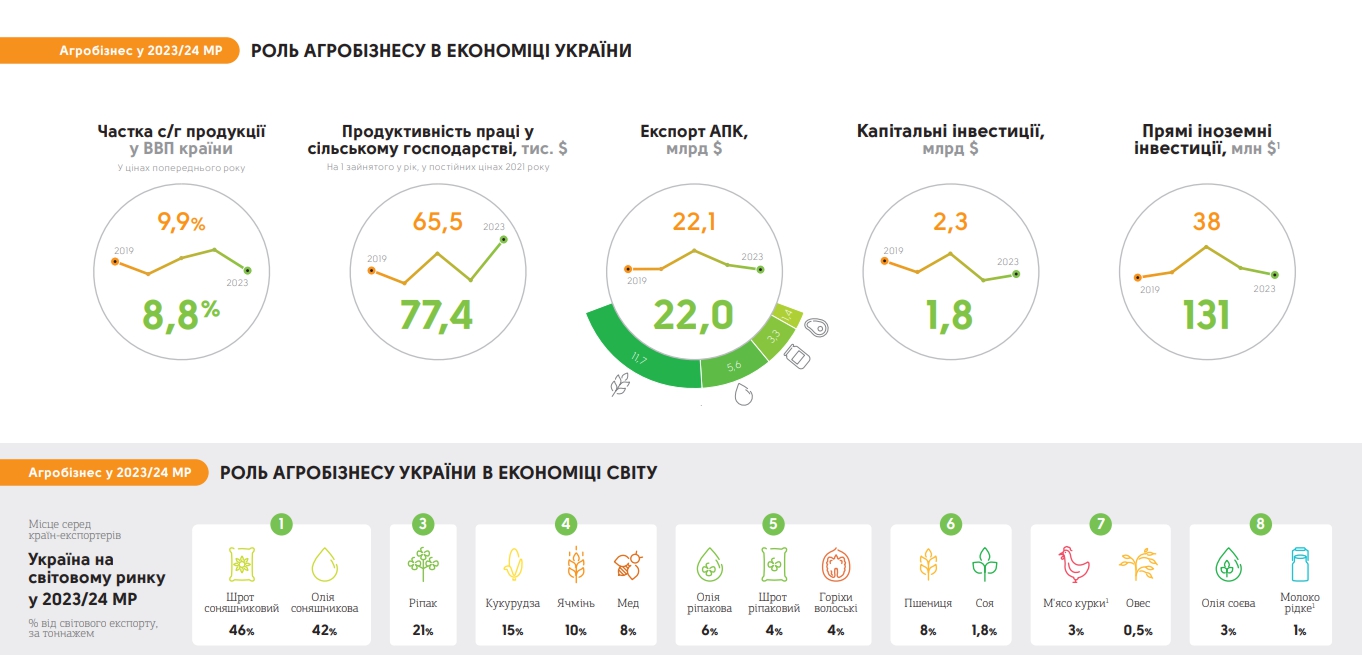 - Доля АПК в ВВП Украины составляет 10–12% (по данным Минэкономики);