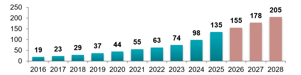 Оптимистический сценарий. При продолжении войны и сохранении нынешней социально-экономической ситуации спрос на сигареты будет оставаться высоким. Повышение ставки акцизов будет оказывать значительное давление на потребителя и приводить к большей тенизации рынка. Доля потребителей ТВЭНов и вейпов, учитывая лоббирование акциза на них на уровне 72 евро за 1000 штук до 2028 года, будет возрастать.