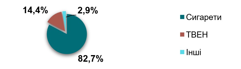 Украинские производители табачных изделий более чем на 90% работают на импортном сырье. Отечественное выращивание табака составляет незначительную долю. В денежном выражении наиболее ценной категорией импорта являются табачные изделия для электрического нагрева (ТИЭН) и вейпы, вместе они составляют 82% стоимости, тогда как сигареты – 15,7%.