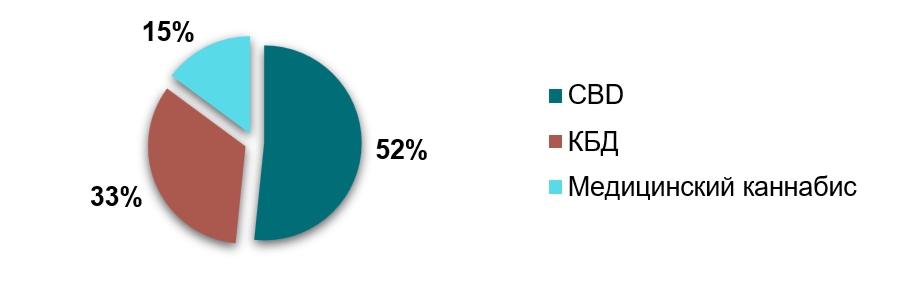 Структура запросов на CBD, КБД и медицинский каннабис в 2024 году, %