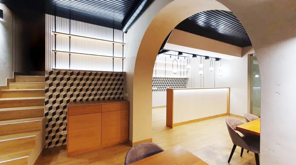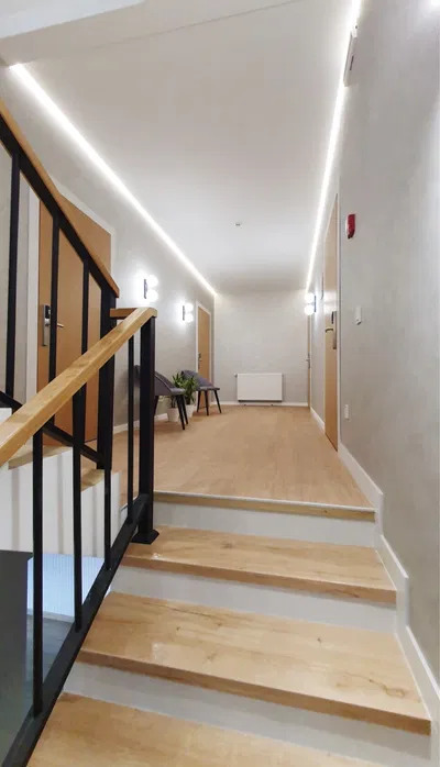 This hotel in Bukovel is a true embodiment of modern architectural beauty and sophistication. Its elegant and modern 5-storey building with a total area of 750 m², including a basement and a spacious terrace, is a combination of style and comfort. It is not only about the craftsmanship of the building, but also about its ability to harmonize with the surrounding nature. The hotel is organically integrated into the environment, located on a mountainside and surrounded by magnificent forest. This gives a special atmosphere of calm and privacy, making it an ideal place to relax and recuperate. Thanks to its bright and stylish appearance, it stands out among the surrounding nature, giving guests an unforgettable holiday experience.