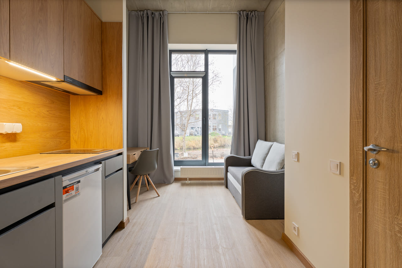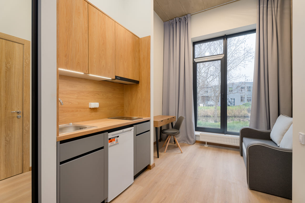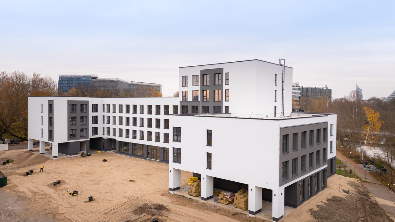 Uniflow Apartments & Co-living is a new six-storey comfort-class project offering 189 apartments and spacious, functional common areas on the ground floor. The project is designed for those who value energy efficiency and a modern urban environment. Advanced technical solutions and materials were used in construction, including six-chamber selective glazing, ensuring low resource consumption and maximum thermal insulation. All apartments are offered fully finished and furnished, allowing immediate operation or rental upon purchase. For additional convenience, parking spaces are available in the courtyard.