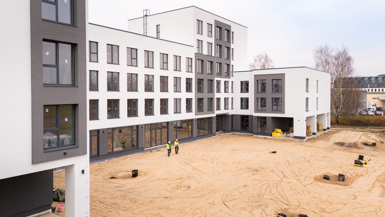 Current construction status: The building is completed; additional internal engineering networks, interior finishing works, and site landscaping are required.