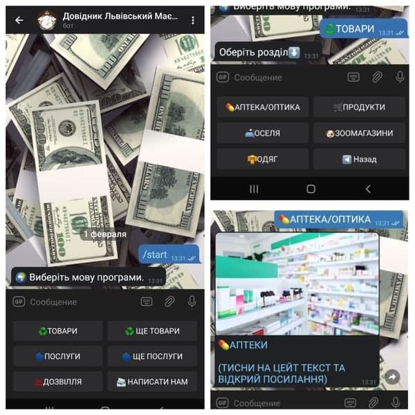 Для просмотра работы бот-приложений предлагаем вам пройти по ссылкам Telegram размещенным ниже: