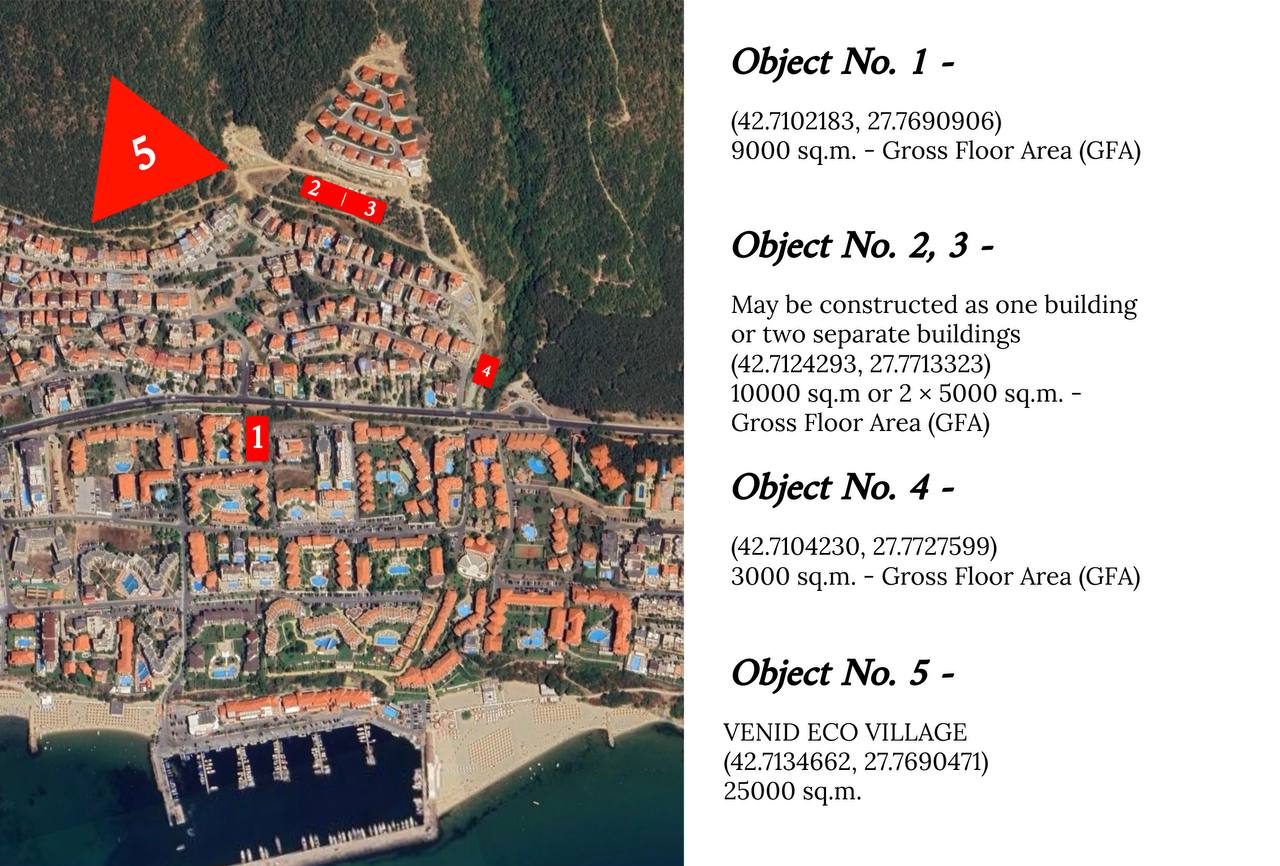 НОВЫЕ ОБЪЕКТЫ НА ТЕРРИТОРИИ DINEVI RESORT (участки на карте отмечены Object No. 1–5)