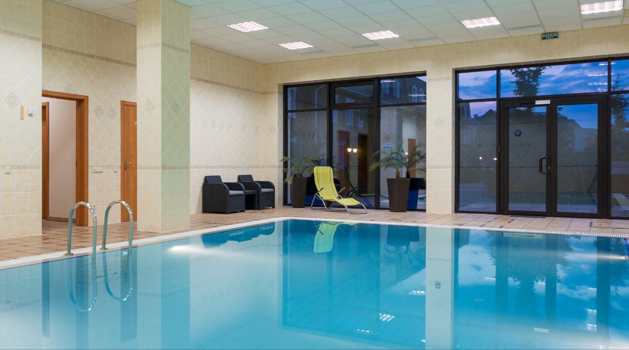 - спорткомплекс с крытым бассейном и сауной,
