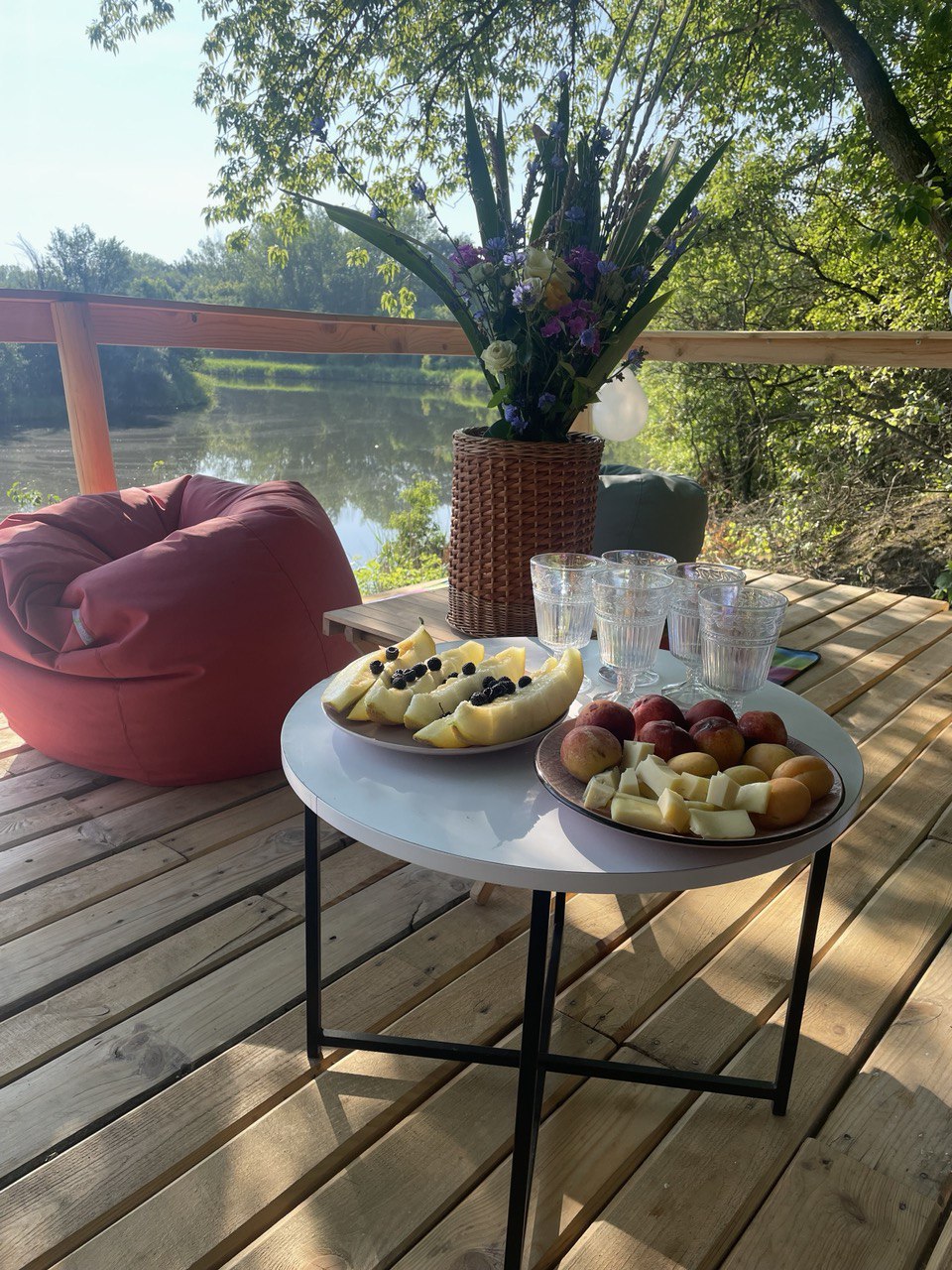 Месторасположение: глемпинг находится в живописном селе Саевка Днепропетровской обл. на берегу реки Саксагань. Село находится на трассе Е-50 в 75 км от Днепра. Расстояние от участка до реки - 20 м. Река шириной до 50 м.