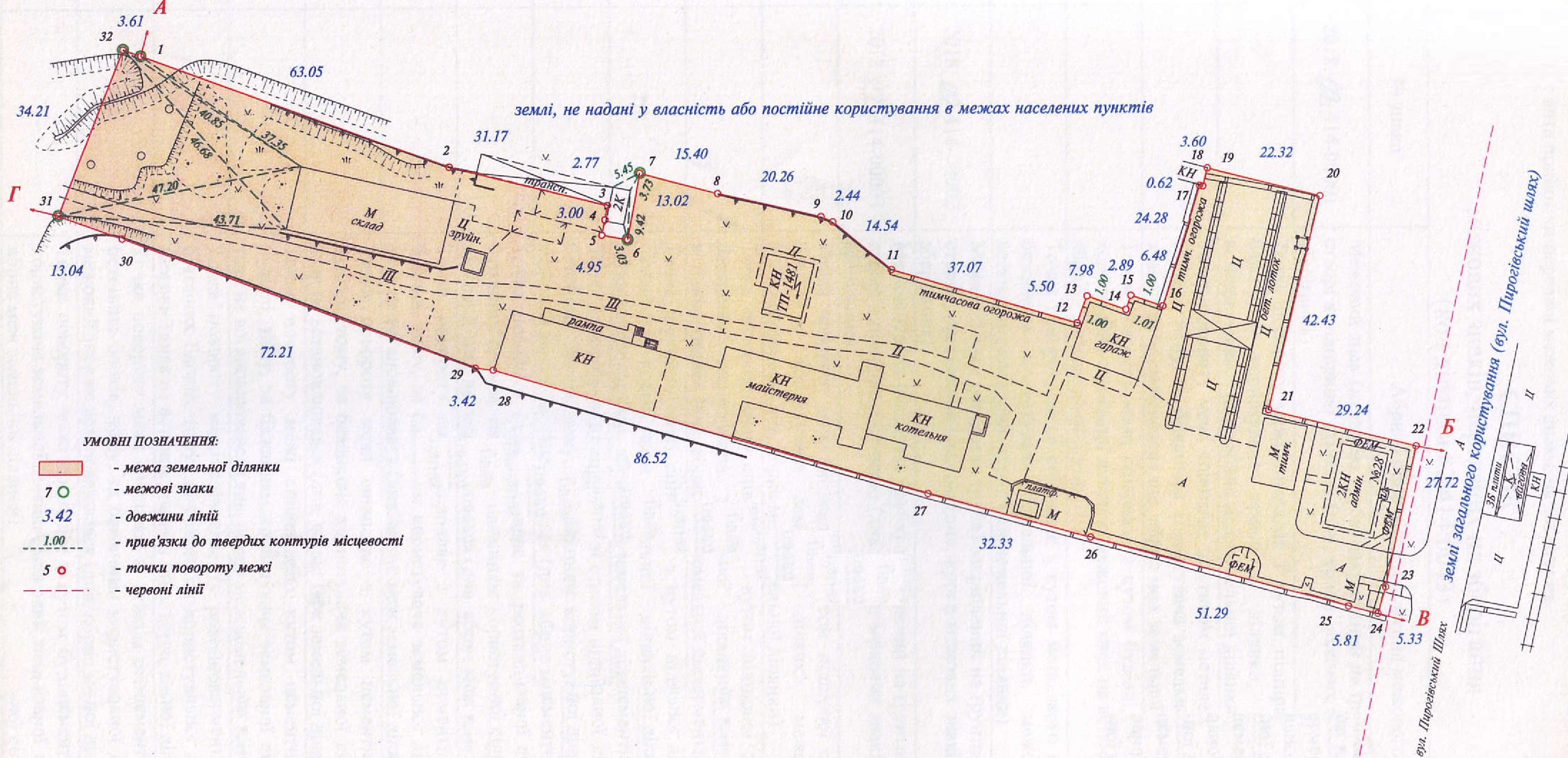 Имущественный комплекс (административно-производственная база) расположена в Голосеевском районе г. Киева ул. Пироговский шлях на двух земельных участках: