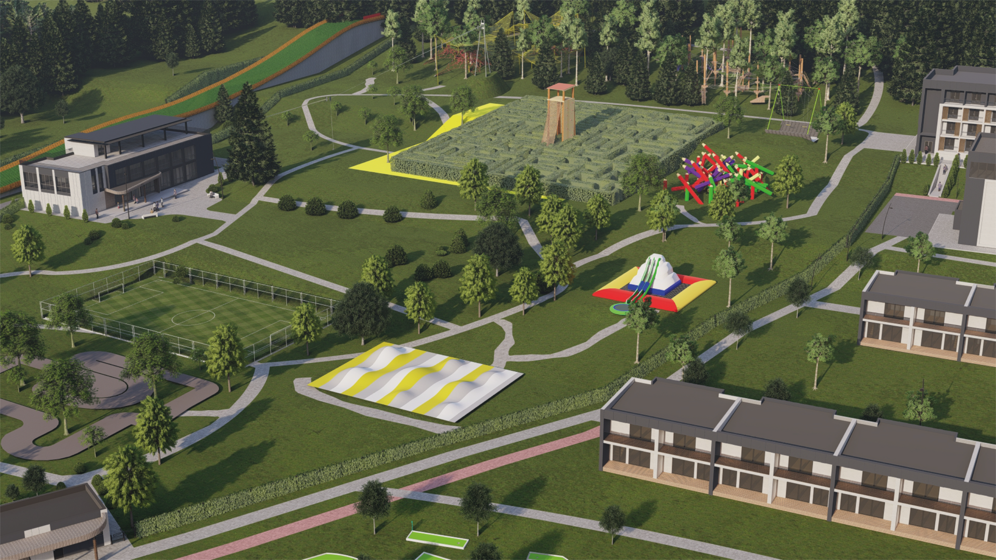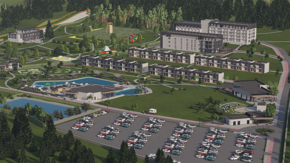 Строительство гостинично-развлекательного комплекса запланировано в Ивано-Франковской области, на базе бывшего детского санатория, который будет включать в себя: парк аттракционов площадью 2.5 га, большой SPA-центр, бассейны, всесезонный тюбинг, памп-трек, лесные велотрассы, дрифт-картинг, ресторан, апарт-отель с коворкинг-центром, а также множество видов развлечений и отдыха.