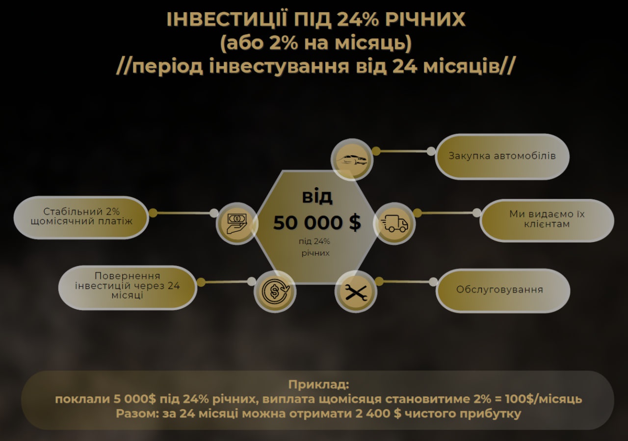 - Умови доходу індивідуальні, залежно від суми та строку інвестиції.